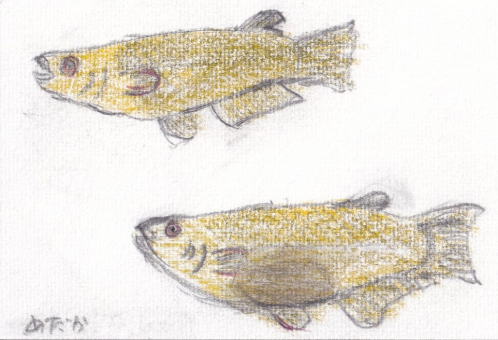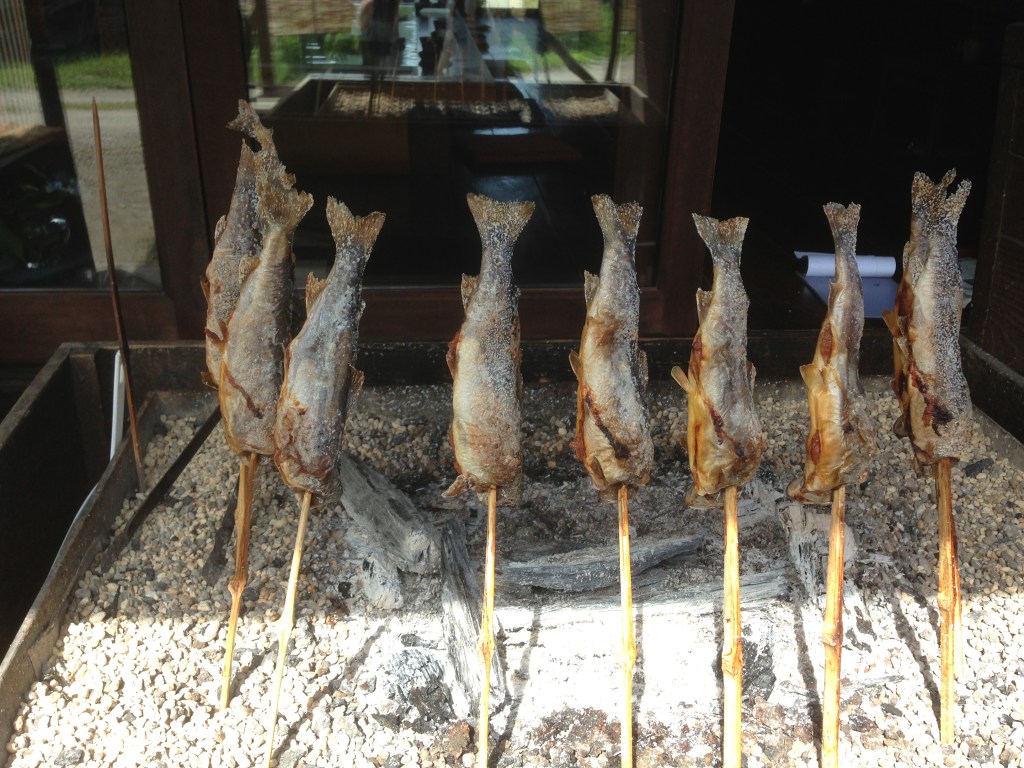 昔の写真。イワナの塩焼き風景は長野か岐阜の売店での撮影。旅行の際に撮影。岸壁、河原でバーベキューしながら、魚採りをしたい。