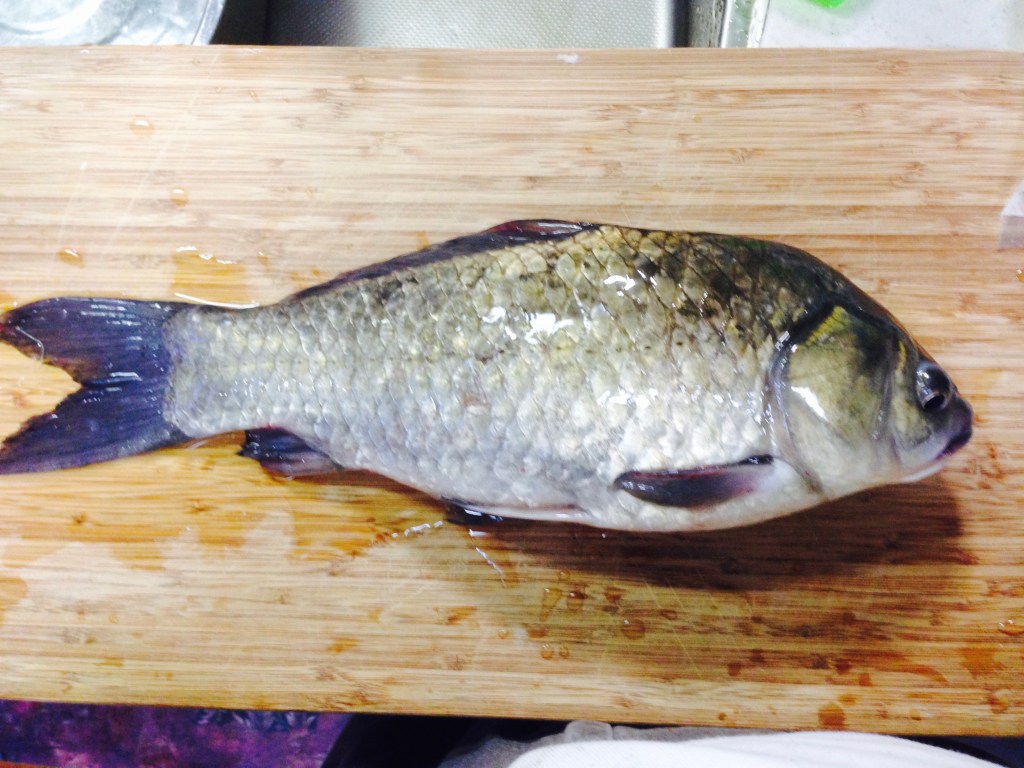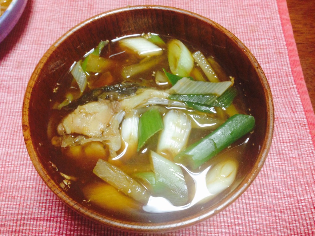 昔の写真。自分で作った真鮒の煮つけ汁。美味しかったです。以前の新川で釣った魚です。活魚なので、刺身で食べればよかったのにとみんなに言われました。
